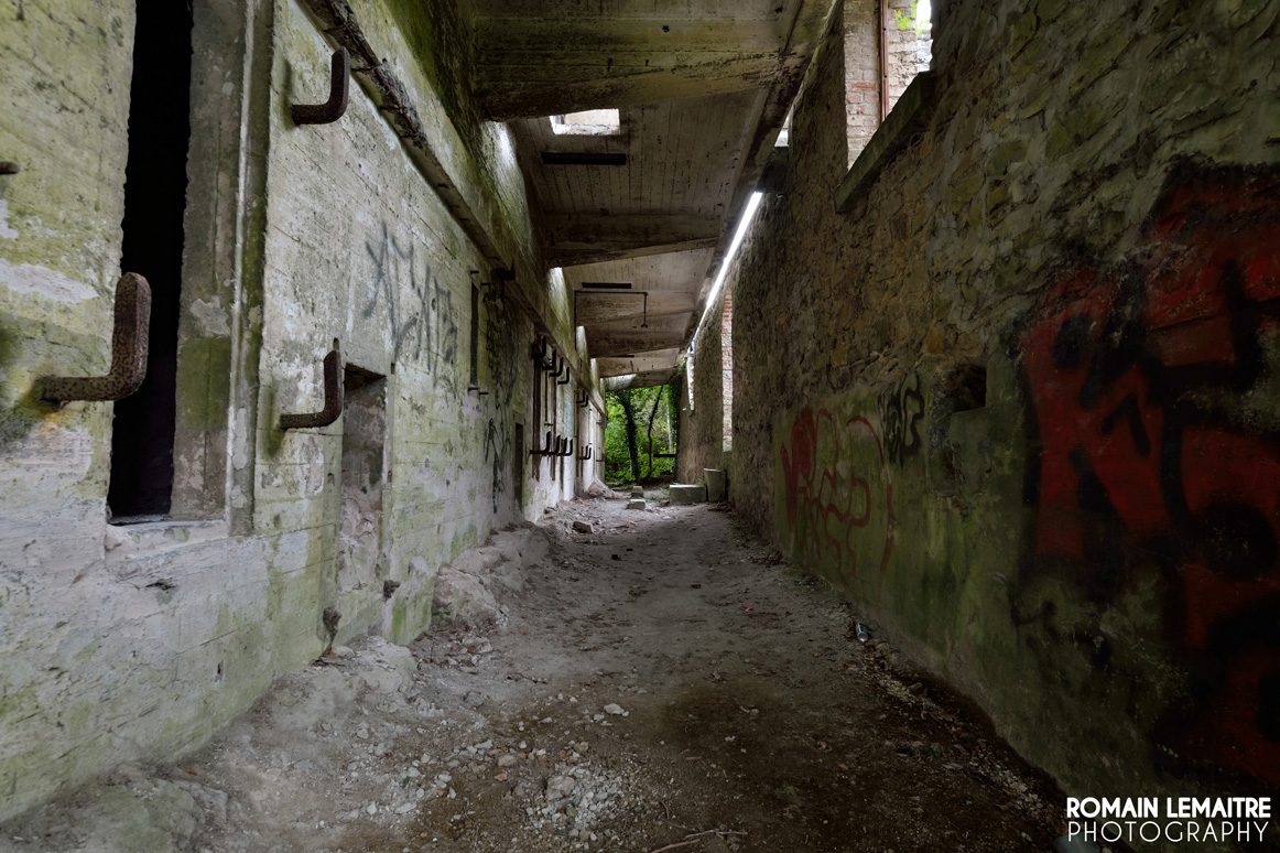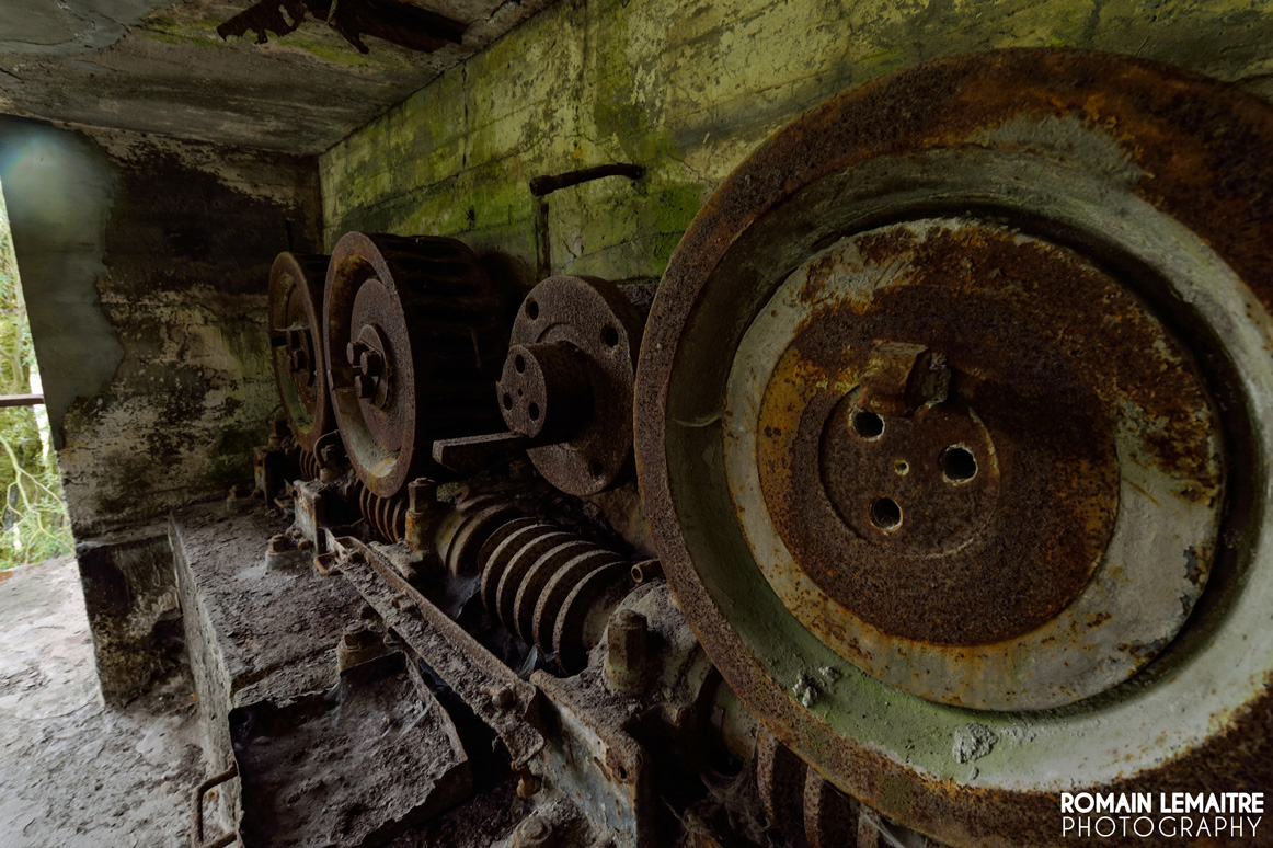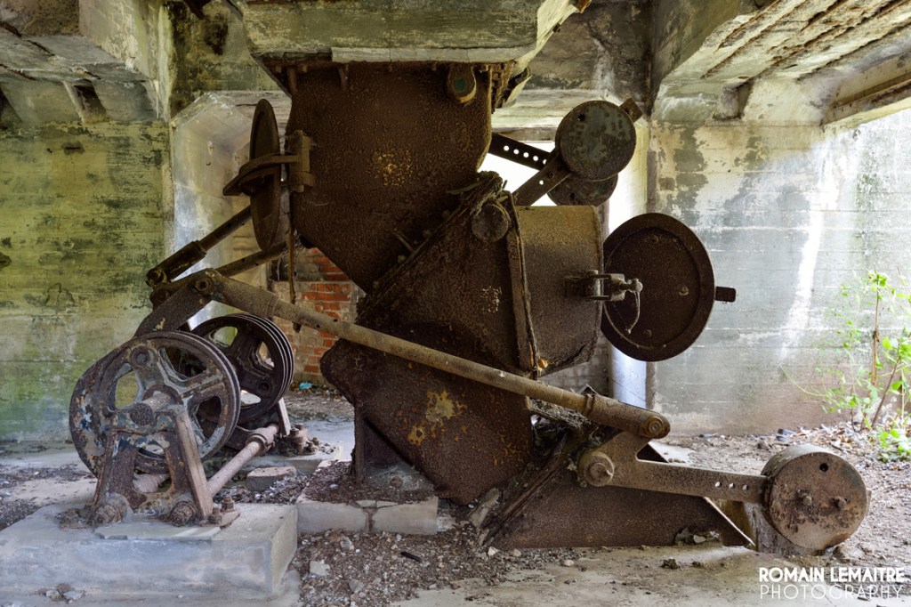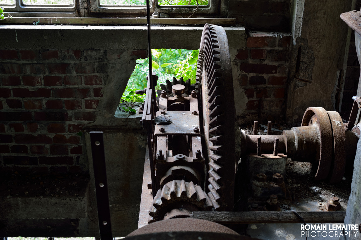 Nous continuons notre chemin vers les autres grandes salles, aussi vides les unes que les autres. Il reste quelques rouages, mais plus aucune machine imposante à l’horizon. Cependant, des traces externes à l’activité du site sont encore visible : c’est effectivement un endroit parfait pour des soirées « mondaines » ou des rave parties. Les palettes en bois, placées comme garde corps, nous laisse penser qu’il y a dû avoir beaucoup d’amusements, de rires et de breuvages à flots.