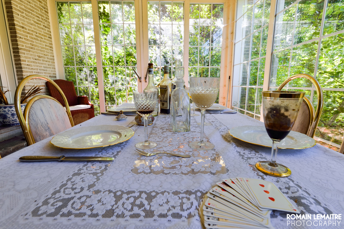 Comme Cooper poursuivant un drone indien dans un champ de maïs, c’est de cette manière que nous nous infiltrons dans le terrain sans alerter le voisinage. Cette première étape faite, nous préparons notre matériel avant de chercher une entrée dans la villa, chose qui s’avère très facile. C’est une fois dedans que notre excitation augmente d’un grand pas : « l’intérieur est quasiment intact ! ». D’ailleurs, cela doit être la première fois que l’on découvre autant d’objets et de mobilier en bon état. Nous prenons connaissance de chaque pièce, nous contrôlons que personne d’autre n’est présent, puis nous nous lançons dans l’exploration après une pause petit déjeuner.