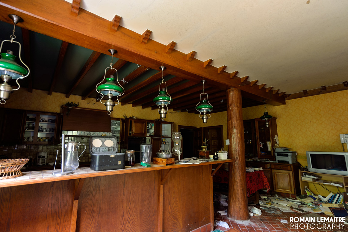 Il n’y a plus une seconde à perdre, il faut prendre les dernières photos rapidement et déguerpir au plus vite. La fin de l’exploration se fait sous pression et nous n’avons pas le temps de chercher des informations supplémentaires. Cependant, de nombreux ouvrages sur des pays, des dictionnaires bilingues et un globe nous font penser que l’homme de maison voyageait beaucoup. Le bureau étant photographié, nous partons précipitamment en emmenant le second groupe par le chemin le plus discret. Une vingtaine de minutes seront écoulées entre l’alerte lancée et notre extraction réussie. Nous retiendrons qu’il ne faudra plus jamais se reposer sur ses lauriers après de nombreuses explorations sans une visite surprise.