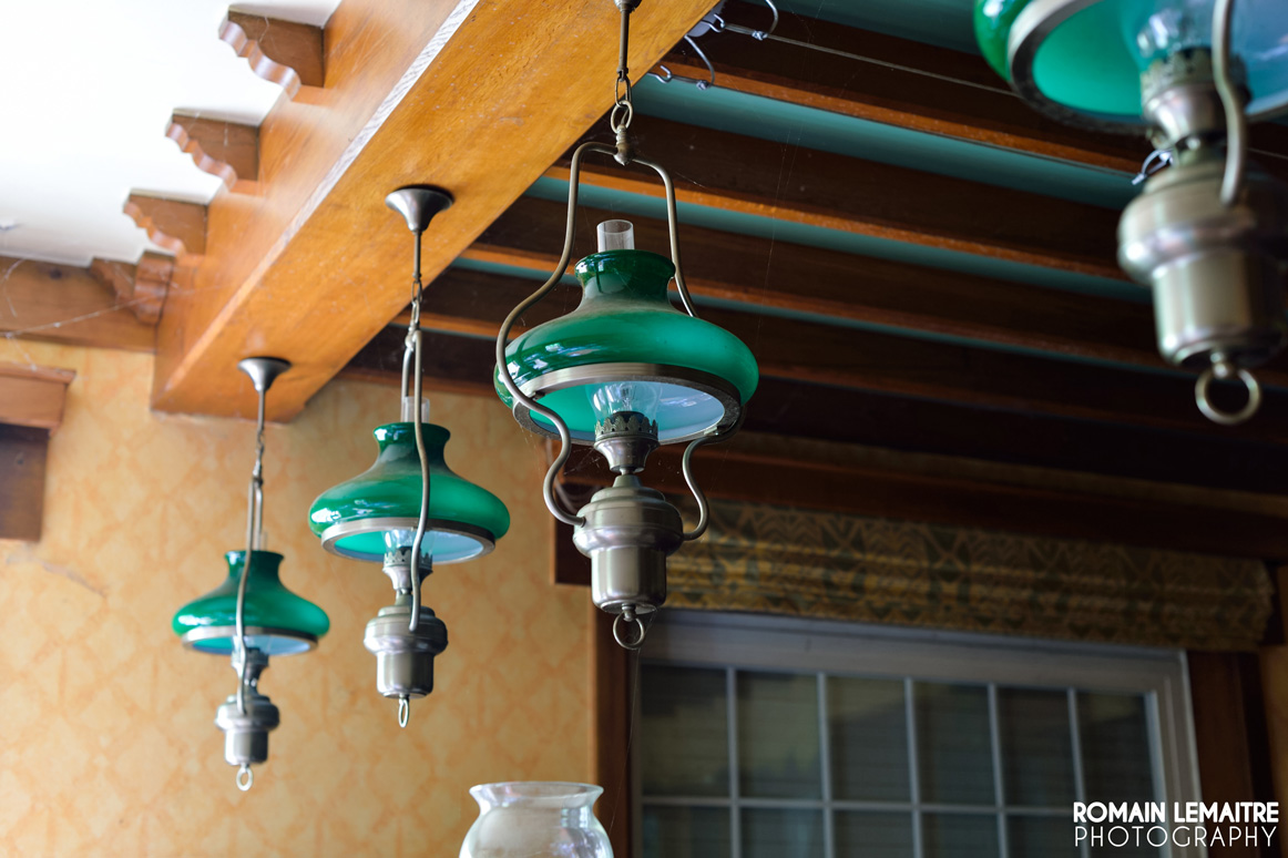 Une belle table de blanc, de dorure et d’un raffiné digne d’un dressage bourgeois est installée dans la véranda. Les rayons matinales du soleil traversant le cristal des verres rend la pièce scintillante, presque théâtrale. À coté de cette pièce se trouve la cuisine, façon bistro de quartier avec ses suspensions imitant des lampes à huile. À l’inverse de la véranda, cette pièce est en pagaille totale, il est donc difficile de trouver des informations sur les occupants. Le salon et le hall ne donneront pas plus d’indice, uniquement celui de la classe sociale et des générations de la famille. Avant de continuer l’exploration à l’étage, nous nous posons sur les fauteuils rouges très confortables, mais c’est à ce moment là que les ennuies commencent…