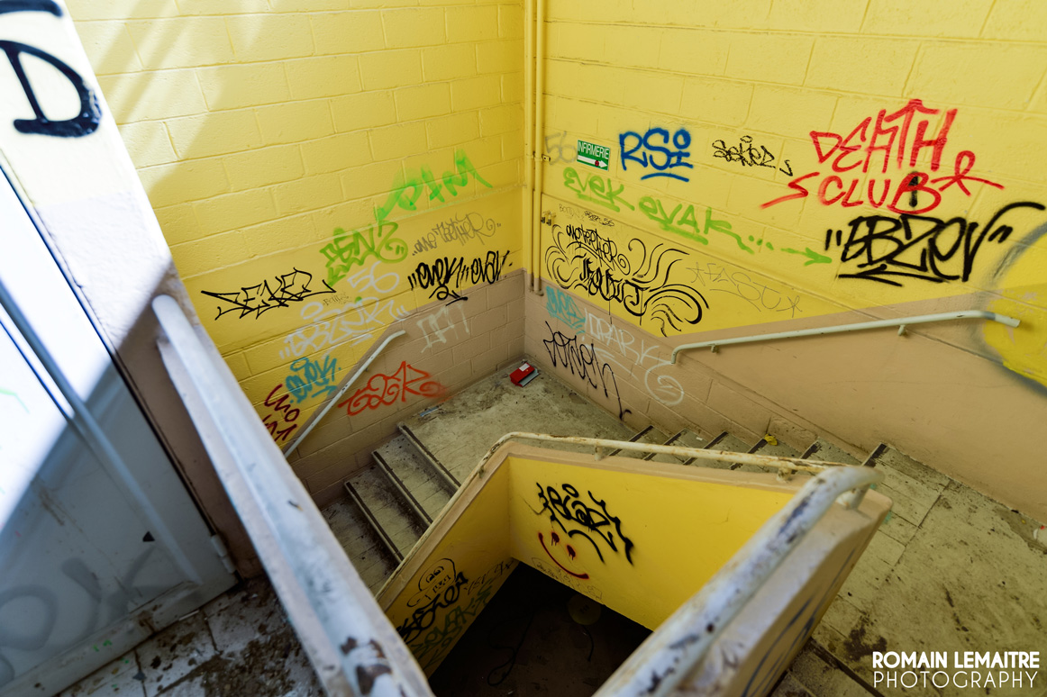 Au départ, nous traversons des couloirs et des grandes salles vides transpercées par les rayons du soleil. Jusque-là, rien d’intéressant, excepté un skatepark clandestin et de quelques graffitis. Cependant, c’est à l’étage du dessus qu’une surprise nous attend : une galerie de belles illustrations se dévoile sous nos yeux ! Que l’on se comprenne bien, on ne parle pas de tagueurs du dimanche mais de véritables artistes : Art Lem, Astro, et bien d’autre encore.